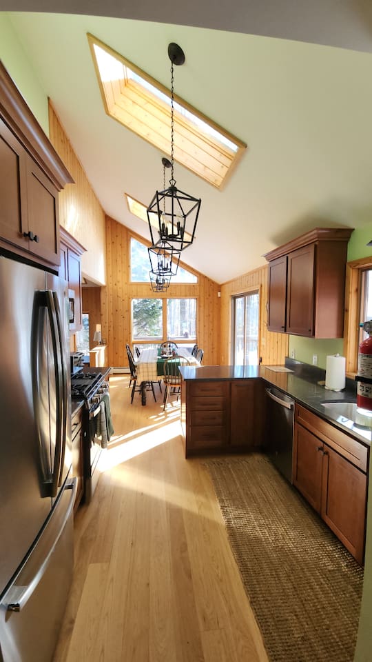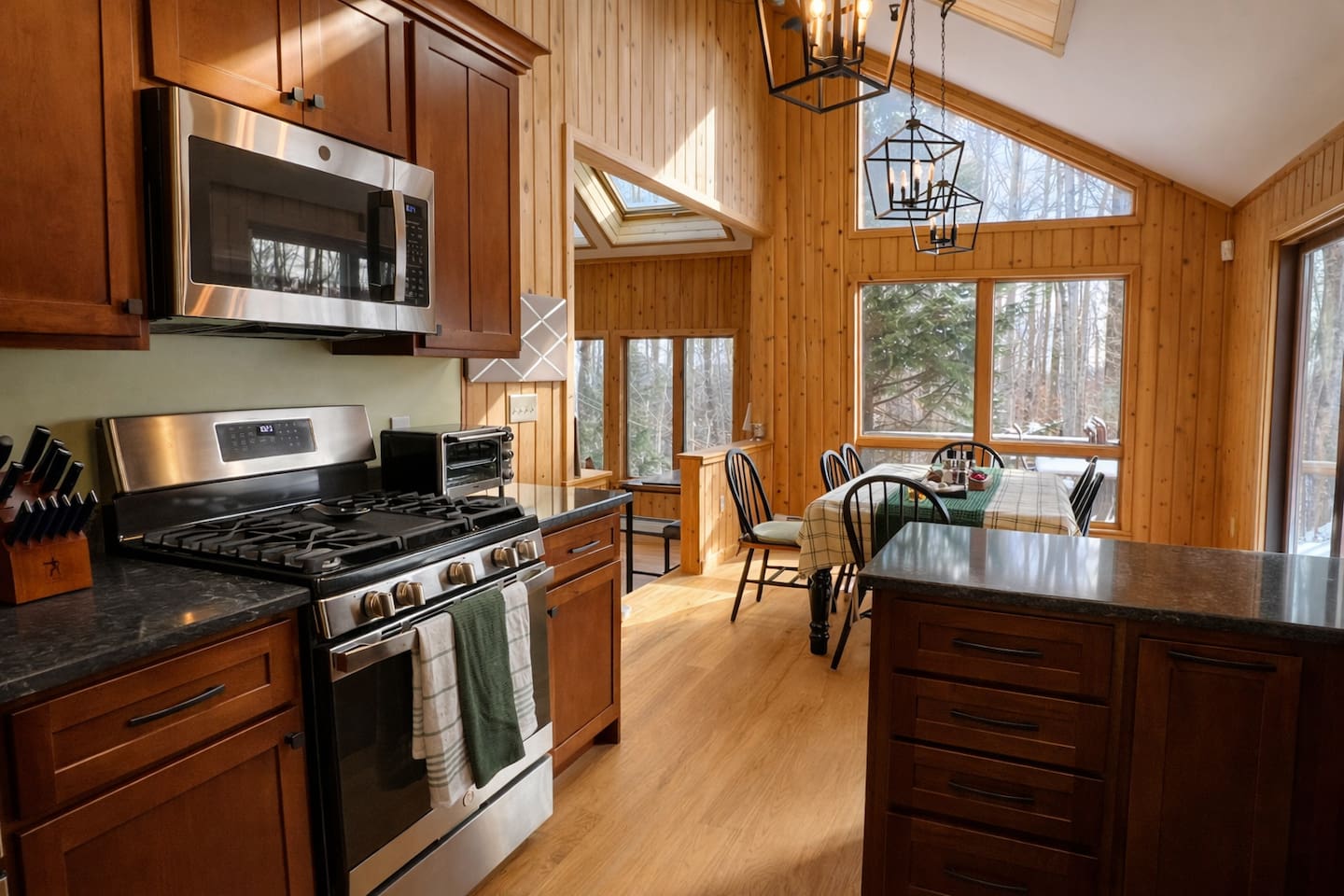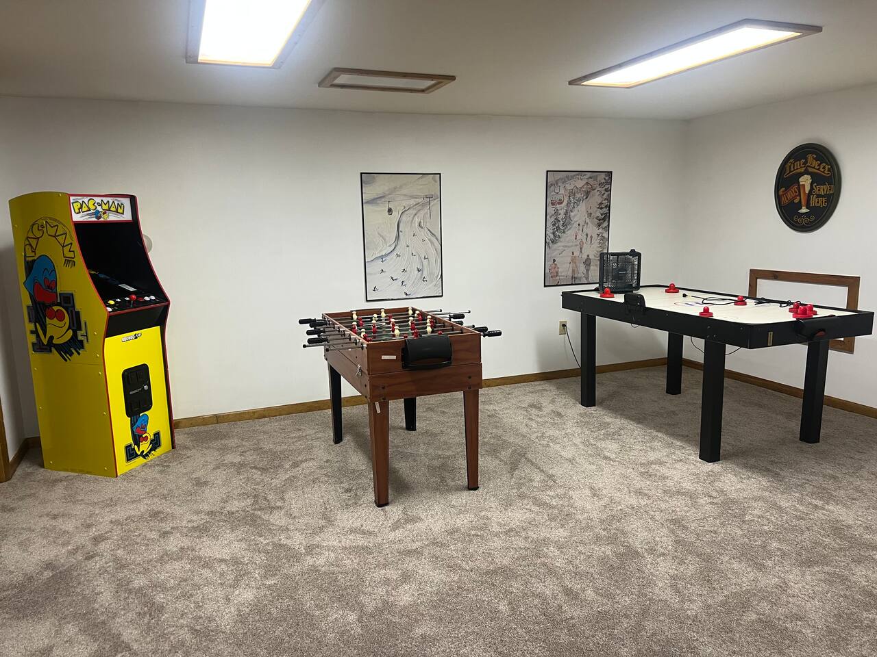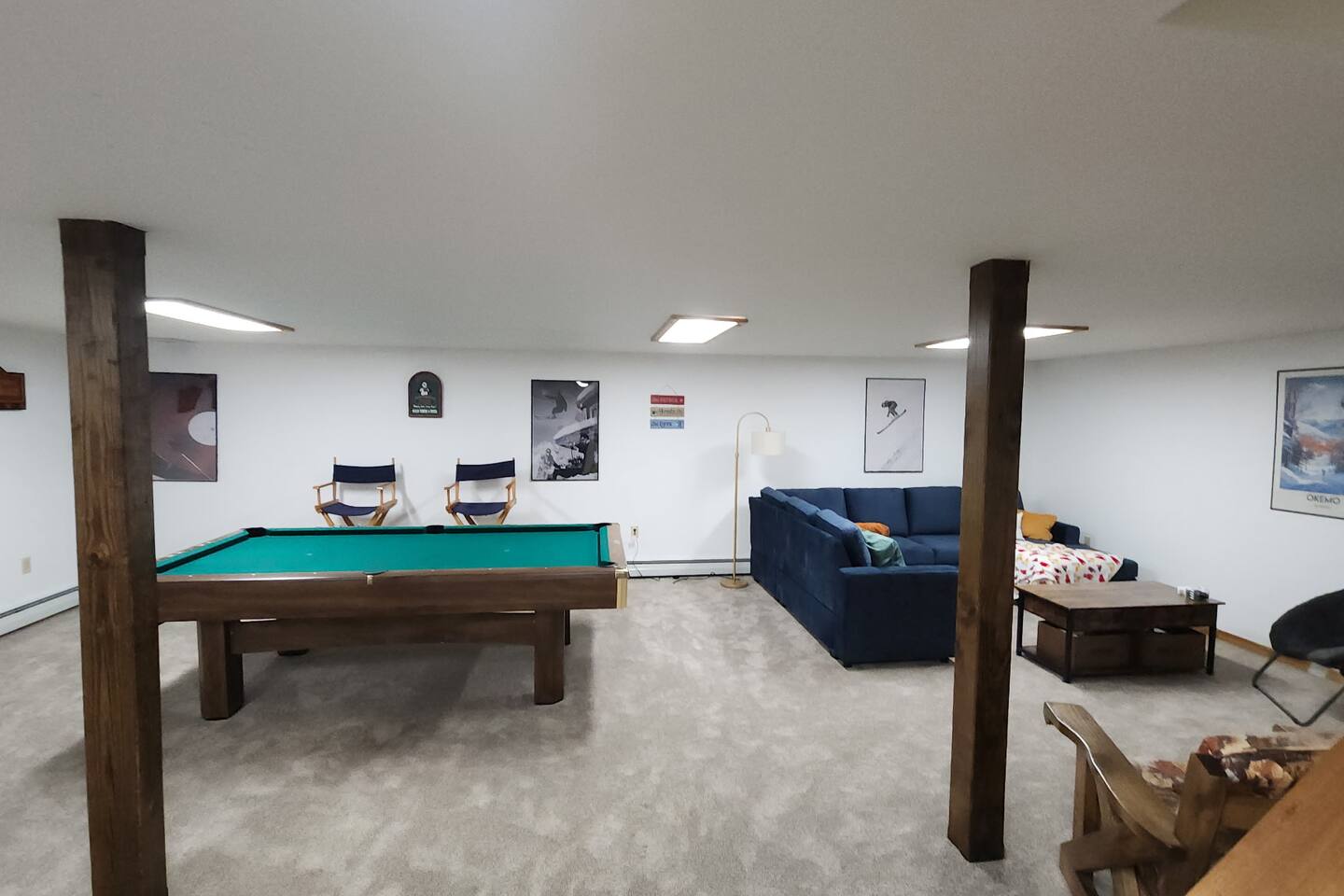 Sugarplum Lodge offers a warm, open layout designed for comfort during snowy Vermont winters. After a day on the slopes, relax by the wood-burning stove, unwind in the private hot tub under the stars, or challenge your group in the game room with arcade games. Thoughtfully designed for families and groups, this home blends rustic lodge charm with modern comfort — the perfect place to warm up and recharge after winter adventures. Main Living Area Beautiful living room with skylights and large windows to watch the snow fall while enjoying a VT soapstone wood burning stove. - Open-concept living room with indoor wood-burning stove - Comfortable seating for group gatherings - Smart TV and fast Wi-Fi Kitchen & Dining Recently renovated kitchen perfect to cook in with all the necessities. Bonus features of brand new kitchenware from Cuisinart, Titanium pans, and sharp knives. - Hot cocoa, coffee brewer, espresso machine, and tea bar (hot water kettle) - Fully stocked kitchen with dinnerware and cookware. - Dining table ideal for family dinners or après-ski meals - Available high chair, mini crib with pack and plays available. Bedrooms & Sleeping Easy sleeping with comfortable rooms, brand new mattresses, extra pillows, and extra sheets. - 3 private bedrooms - Flexible sleeping arrangements - Comfortably sleeps up to 9 guests - Extra blankets, towels, with soap and shampoo. Lower-level game room An epic game room fit for adults, teens, and kids with variety of entertainment for couples, groups, and families. - Classic arcade game (PacMan), Nintendo emulator - Foosball - Air hockey - Pool table - Dartboard - Board games and puzzles - Perfect for kids, teens, and snowy-day fun - Washer and dryer available for use (detergent on prem) Outdoor Winter Features - Private hot tub surrounded by trees - Large front and back yard with front patio and backyard deck. Adirondack chairs and rocking chairs for use - Fire pit and firewood available - Peaceful wooded setting with winter scenery - Mudroom includes indoor ski rack and boot and glove warmers to keep you warm before you head out to the slopes! Sauna (temporarily moved to garage due to weather) We have traveled extensively and have created all the best offerings from our experiences to bring to your vacation. Our home is next to the VAST trail and the road loops in to Okemo’s parking lot. We recommend AWD cars for driving on the mountain. Feel free to ask us any questions, we are here to bring you the quintessential Vermont experience! Perfect for ski weekends, holiday stays & winter getaways. Après-ski hot tub + game room = winter perfection!