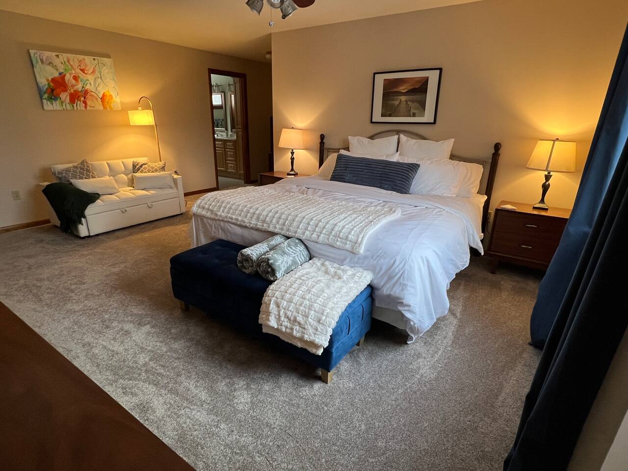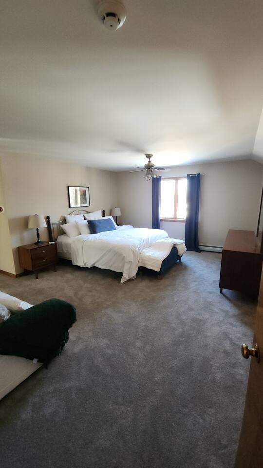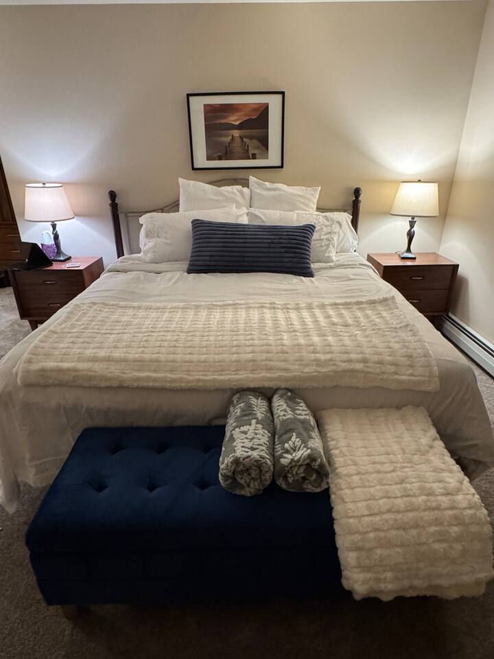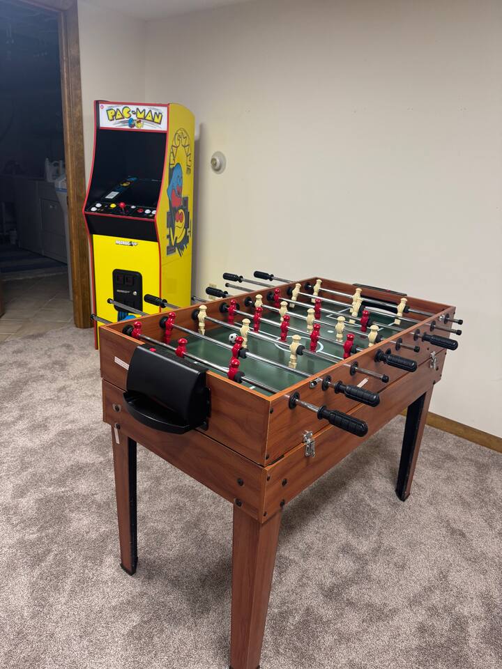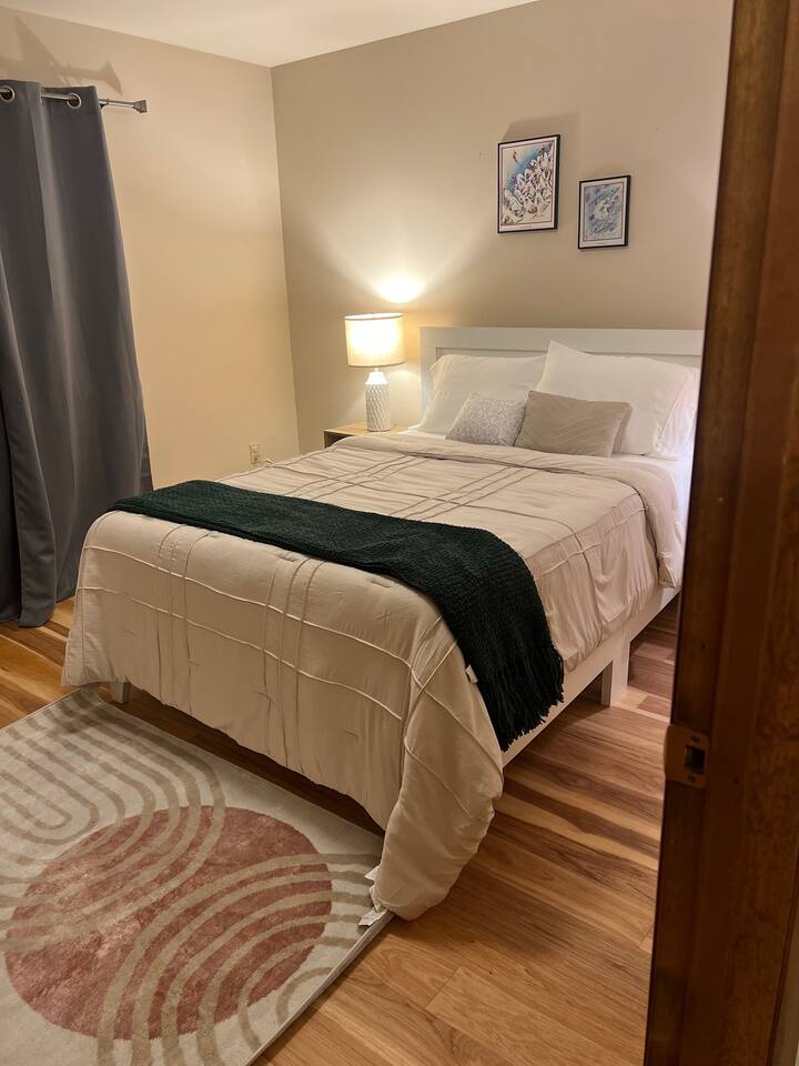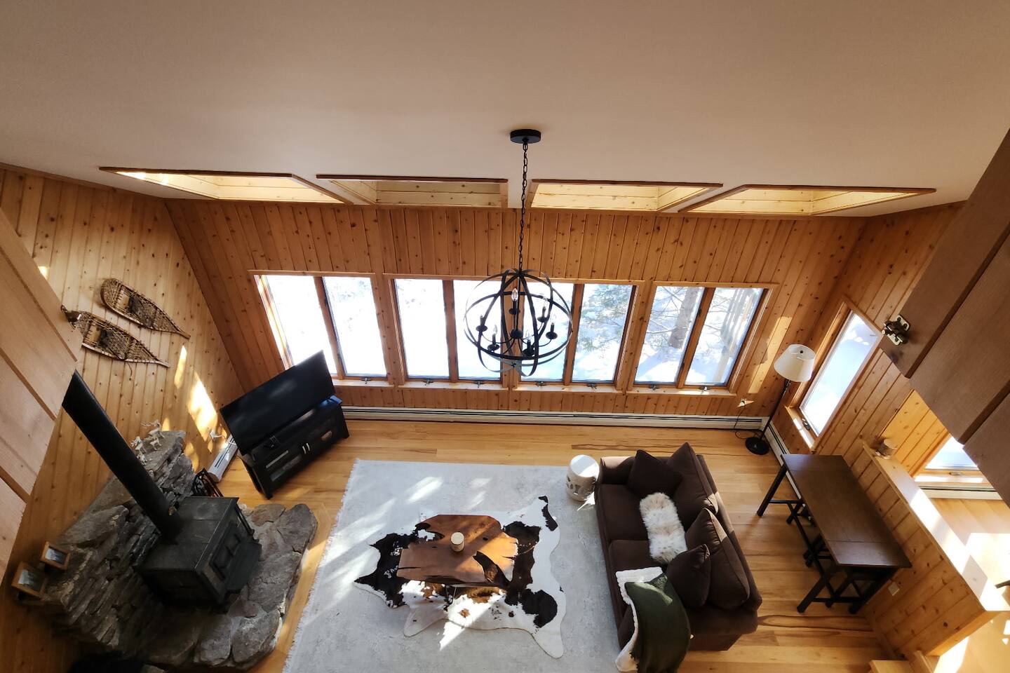 Sugarplum Lodge offers a warm, open layout designed for comfort during snowy Vermont winters. After a day on the slopes, relax by the wood-burning stove, unwind in the private hot tub under the stars, or challenge your group in the game room with arcade games. Thoughtfully designed for families and groups, this home blends rustic lodge charm with modern comfort — the perfect place to warm up and recharge after winter adventures. Main Living Area Beautiful living room with skylights and large windows to watch the snow fall while enjoying a VT soapstone wood burning stove. - Open-concept living room with indoor wood-burning stove - Comfortable seating for group gatherings - Smart TV and fast Wi-Fi Kitchen & Dining Recently renovated kitchen perfect to cook in with all the necessities. Bonus features of brand new kitchenware from Cuisinart, Titanium pans, and sharp knives. - Hot cocoa, coffee brewer, espresso machine, and tea bar (hot water kettle) - Fully stocked kitchen with dinnerware and cookware. - Dining table ideal for family dinners or après-ski meals - Available high chair, mini crib with pack and plays available. Bedrooms & Sleeping Easy sleeping with comfortable rooms, brand new mattresses, extra pillows, and extra sheets. - 3 private bedrooms - Flexible sleeping arrangements - Comfortably sleeps up to 9 guests - Extra blankets, towels, with soap and shampoo. Lower-level game room An epic game room fit for adults, teens, and kids with variety of entertainment for couples, groups, and families. - Classic arcade game (PacMan), Nintendo emulator - Foosball - Air hockey - Pool table - Dartboard - Board games and puzzles - Perfect for kids, teens, and snowy-day fun - Washer and dryer available for use (detergent on prem) Outdoor Winter Features - Private hot tub surrounded by trees - Large front and back yard with front patio and backyard deck. Adirondack chairs and rocking chairs for use - Fire pit and firewood available - Peaceful wooded setting with winter scenery - Mudroom includes indoor ski rack and boot and glove warmers to keep you warm before you head out to the slopes! Sauna (temporarily moved to garage due to weather) We have traveled extensively and have created all the best offerings from our experiences to bring to your vacation. Our home is next to the VAST trail and the road loops in to Okemo’s parking lot. We recommend AWD cars for driving on the mountain. Feel free to ask us any questions, we are here to bring you the quintessential Vermont experience! Perfect for ski weekends, holiday stays & winter getaways. Après-ski hot tub + game room = winter perfection!